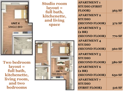 The second floor would offer the greatest possibility for apartments. It is the vision that there be at least four studio apartments and two 2-bedroom apartments.
